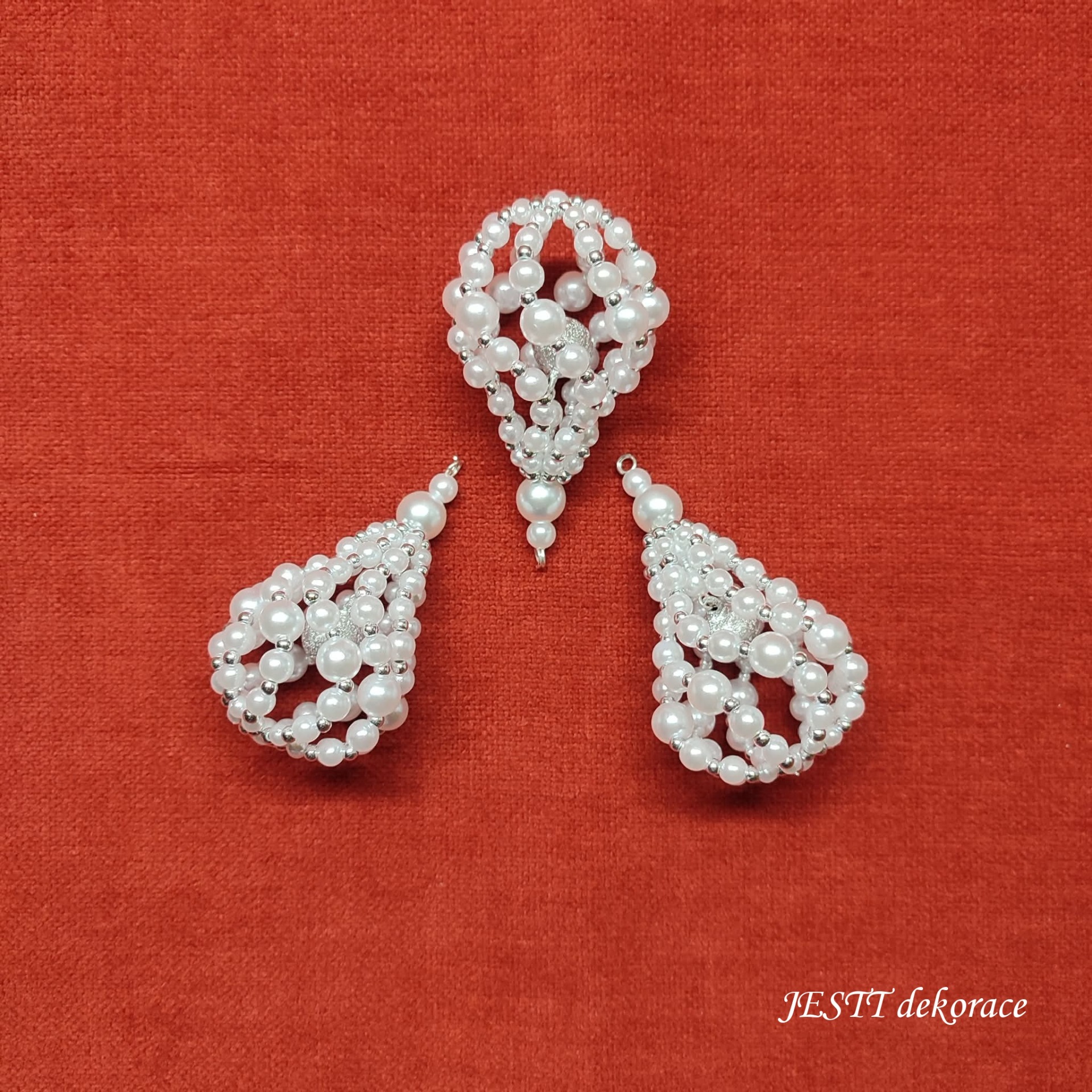 Ručně šitá korálková ozdoba s rolničkou vel. 7 cm. Materiál plast v kombinaci s komponenty z běžných kovů.