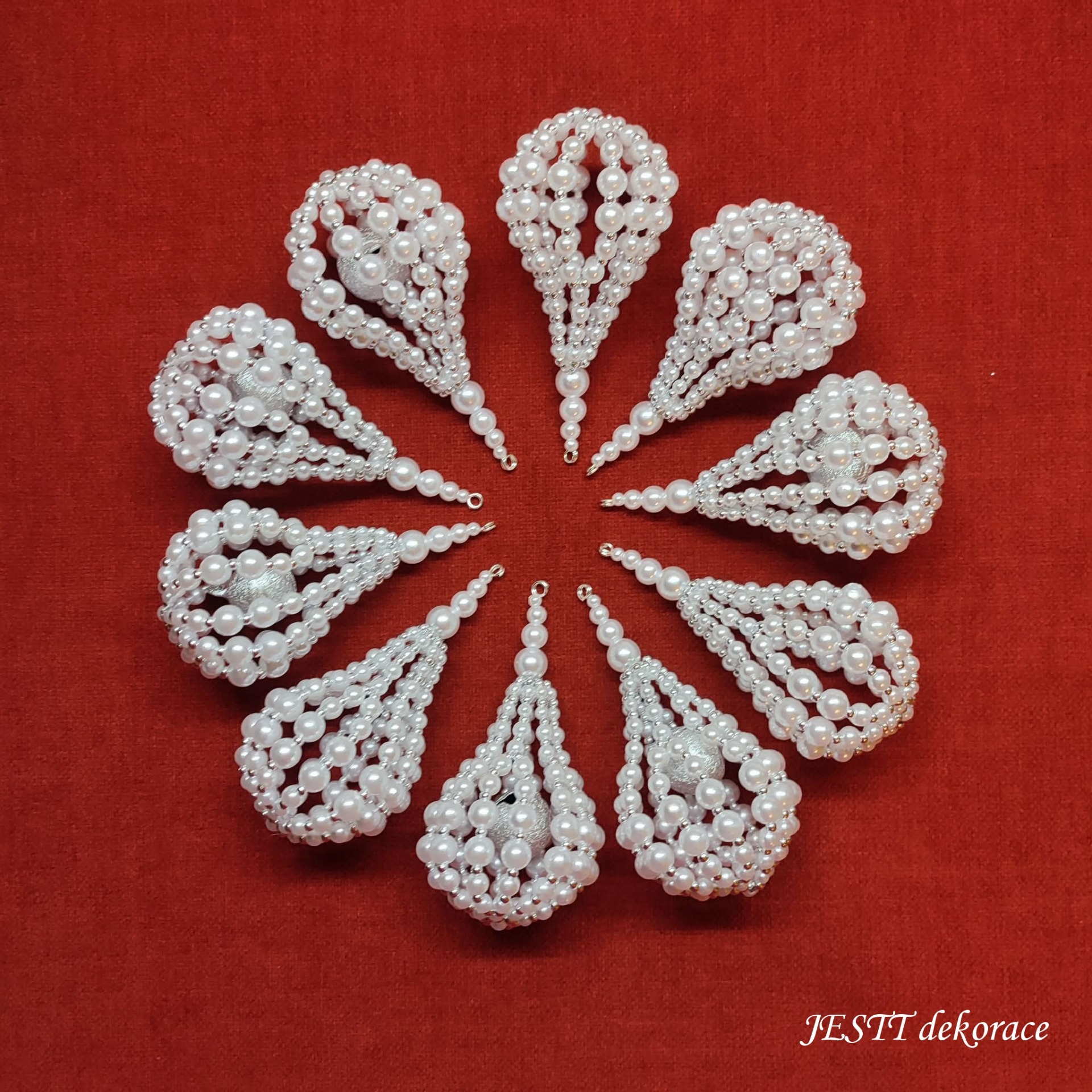 Ručně šitá korálková ozdoba s rolničkou vel. 10 cm. Materiál plast v kombinaci s komponenty z běžných kovů.