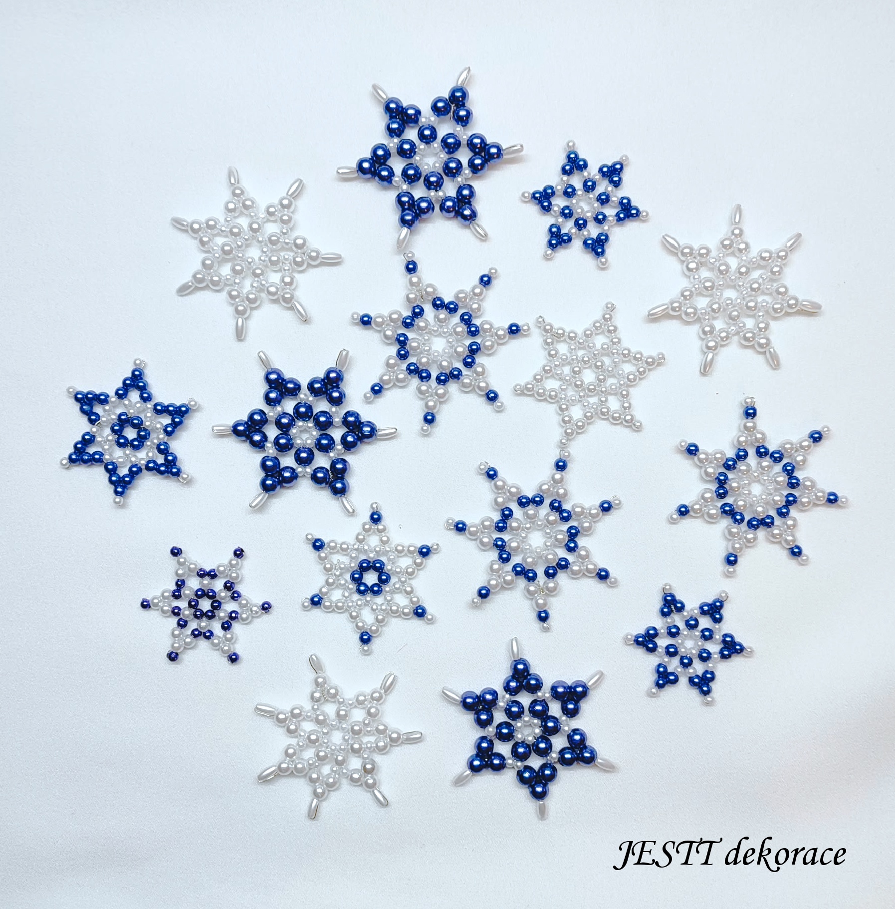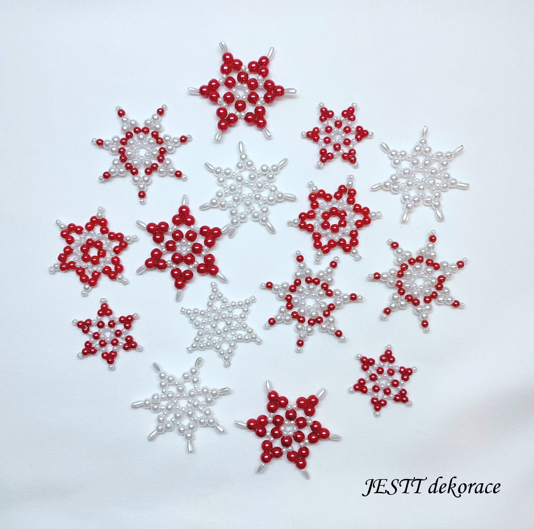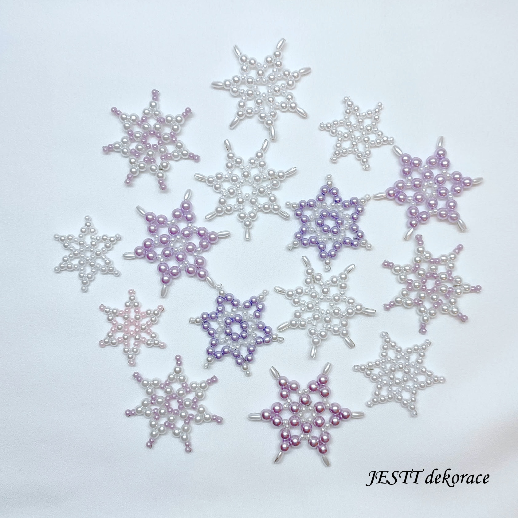 Ručně šité hvězdičky 15 ks ve velikostech 3-5 cm. Vyrobeno z plastových korálků. Jedná se o mix různých barev laděných do stejného odstínu.
