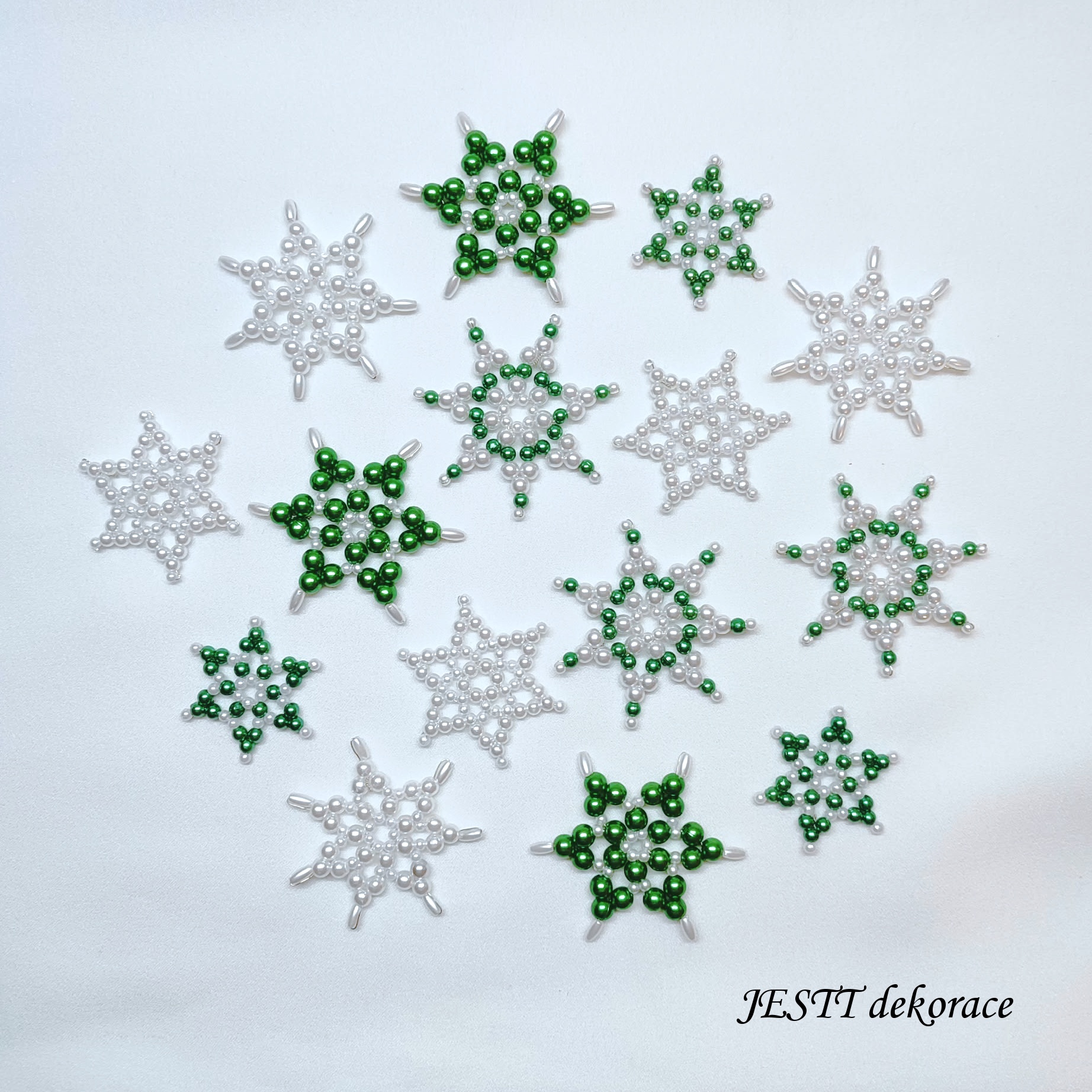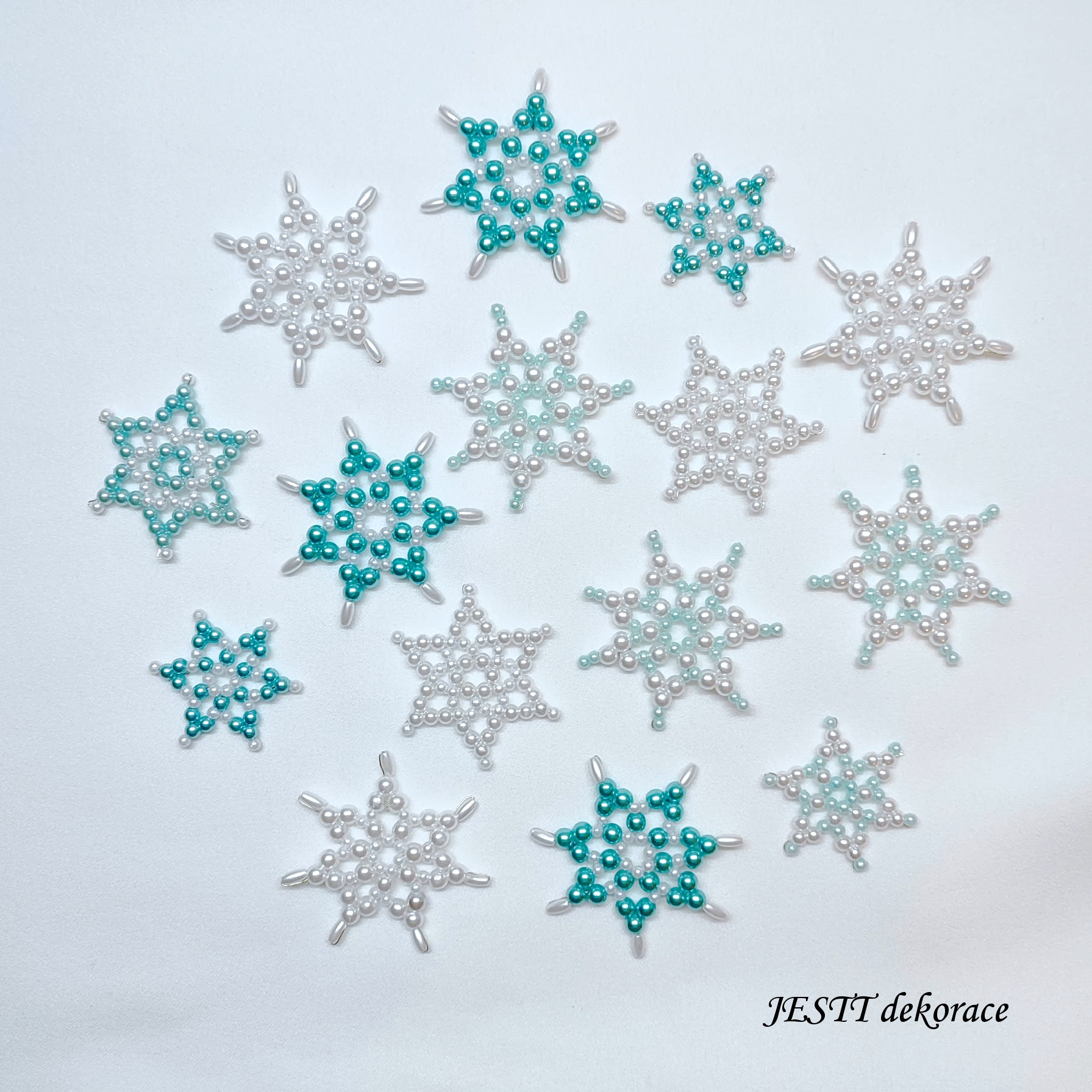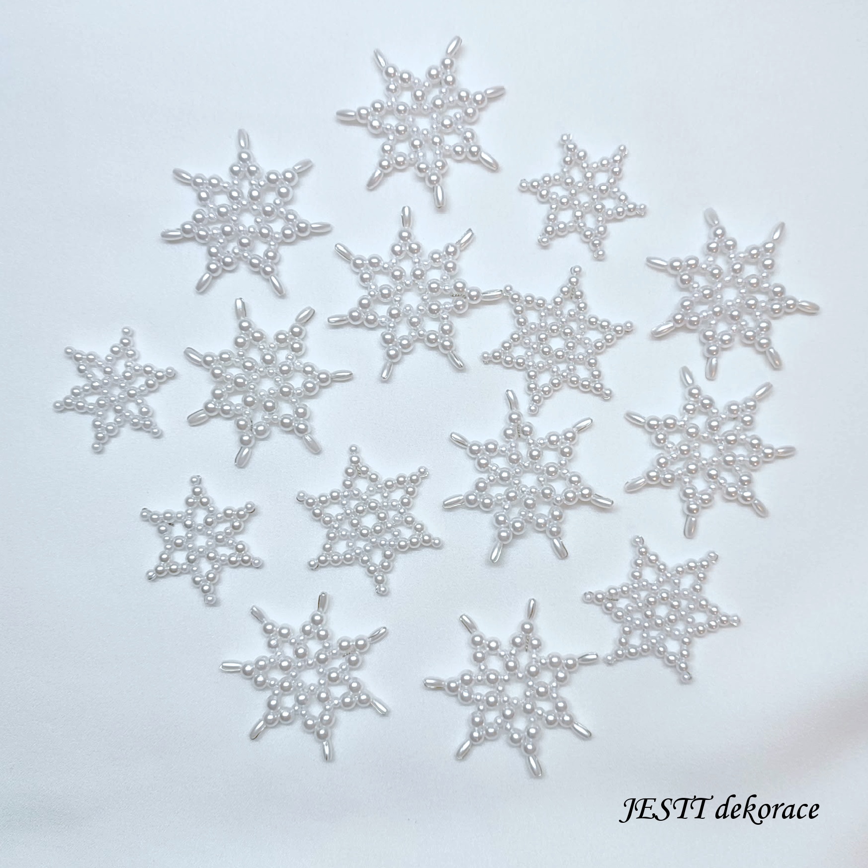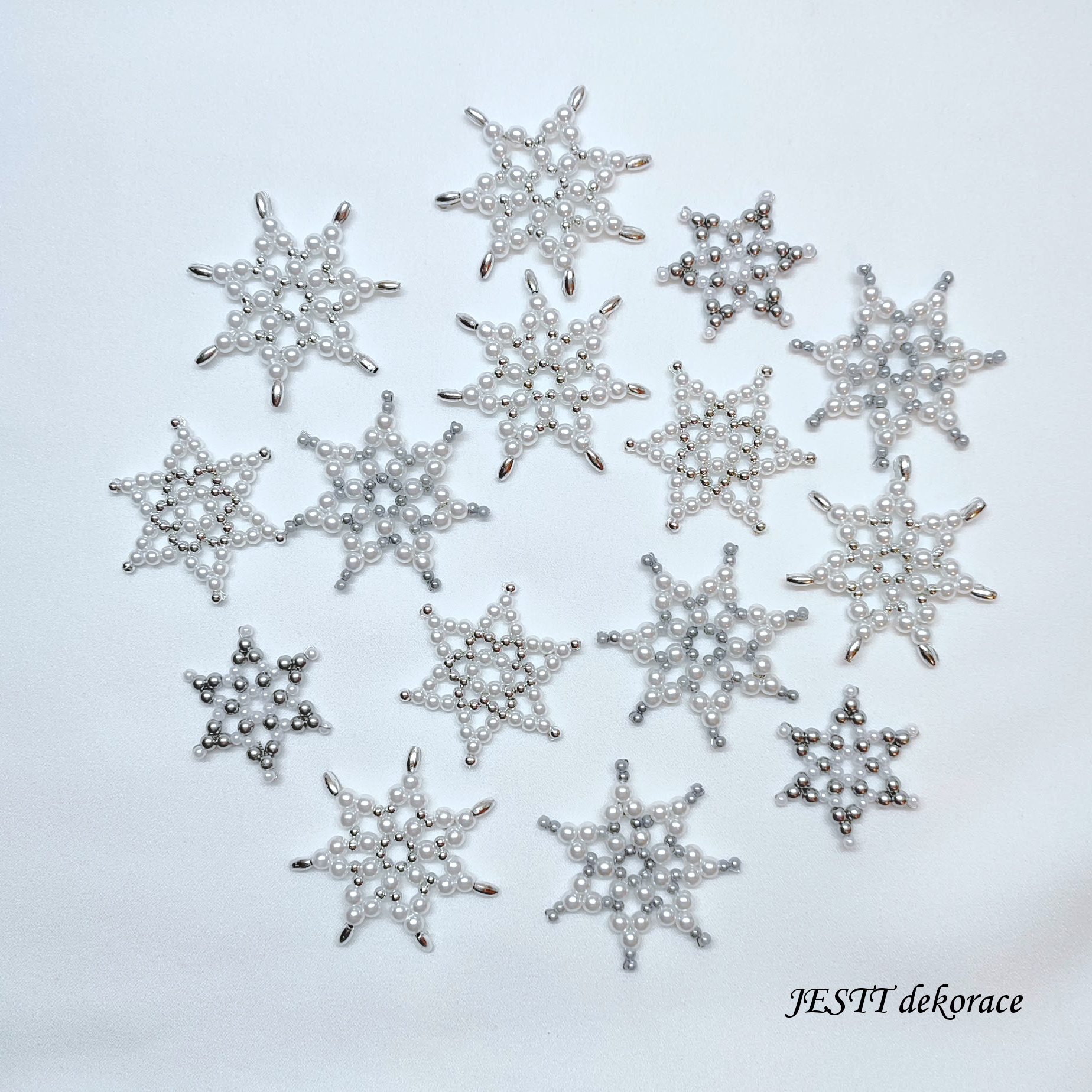 Ručně šité hvězdičky 15 ks ve velikostech 3-5 cm. Vyrobeno z plastových korálků. Jedná se o mix různých barev laděných do stejného odstínu.